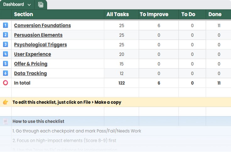 Organized into 7 conversion-critical categories. Every point explained with examples.